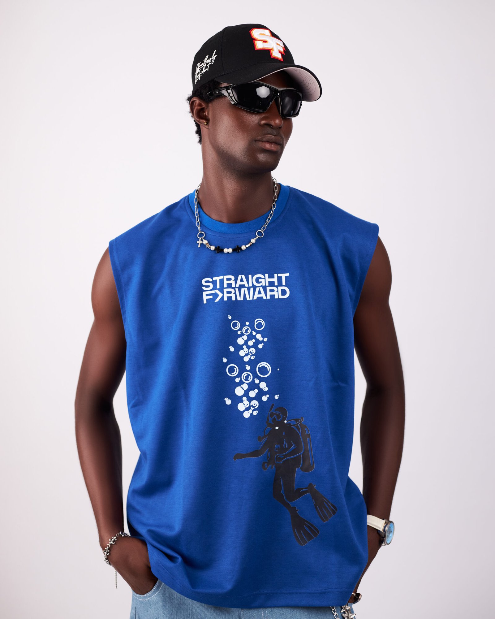 Pound sterlingThe SF Under Pressure Blue Sleeveless Shirt is designed for those who value simplicity and elegance all in one. Perfect for casual outings, workdays, or layering up for a chic look, this shirt provides a breathable, lightweight feel for all-day wear.